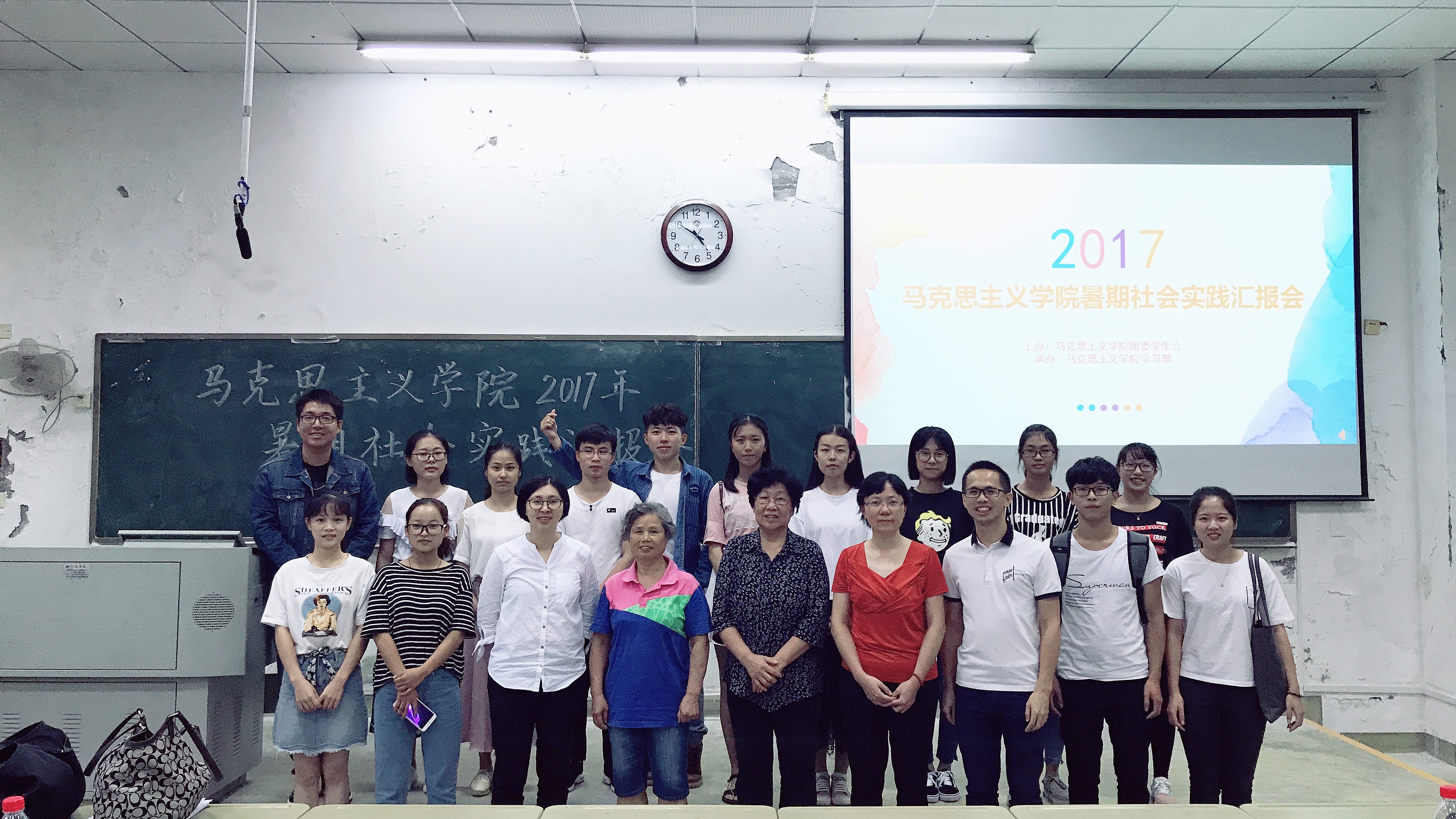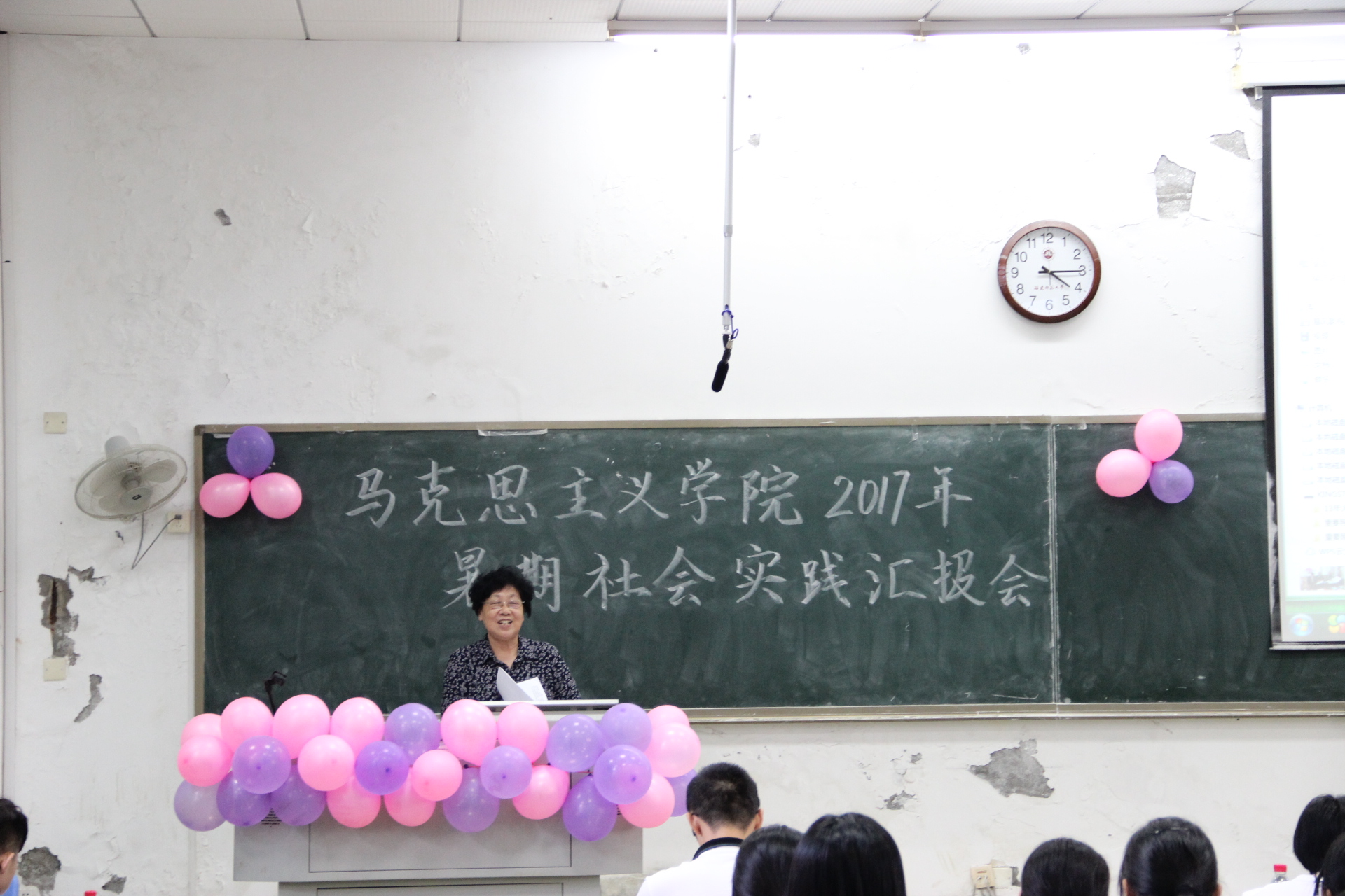 10月18日14:30,由马克思主义学院团委学生会主办、学习部承办的暑期社会实践汇报会在笃行1-215举办。校关工委副主任李淑贞教授、院关工委主任綦正芳教授、学院党委副书记陈秋华老师、院团委书记涂莹老师、辅导员苏剑老师、辅导员金程远老师和马克思主义学院的部分同学参加了本次活动。在汇报会上,2015级、2016级共11支队伍进行了社会实践成果汇报。