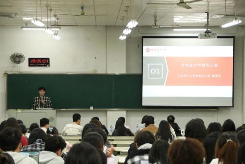 4月24日晚,我院于立诚1-116教室成功召开春季学生会工作人员培训会,院团委书记黄敬兵、各年级辅导员、学生会及研究生会全体成员参加本次培训会。