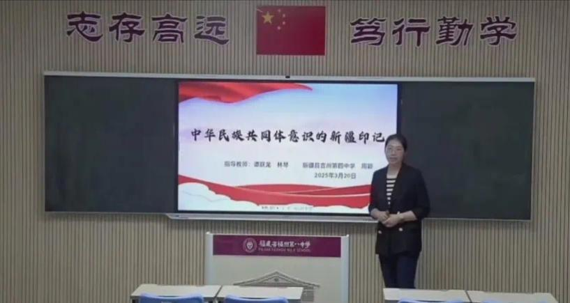 在说课展示阶段,四位来自不同学校的老师分别从民族之间互相尊重、守望相助,铸牢中华民族共同体意识,闽疆环境差异下的协作模式以及福建对口援疆四个方面将铸牢中华民族共同体意识融入不同学科,展开说课,对课程的教学背景、教学过程和教学评价进行分析。