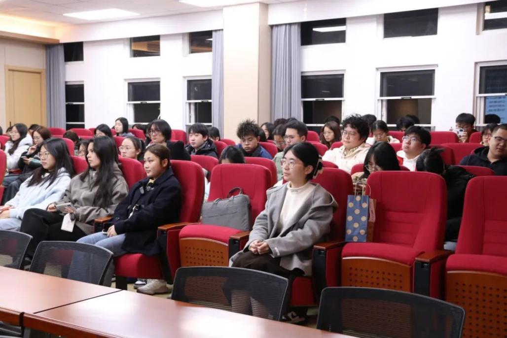 随后,在四六级经验分享环节,卞衠婷、陈可昕、陈妍希同学分别从自身学习经历出发,向同学们分享了实用的英语学习技巧与做题方法,并强调了词汇积累的重要性。推荐利用碎片时间,借助各类单词记忆APP进行日常背诵,并结合文章加深对词汇的理解与运用。同时,针对不同题型,三位同学分享了答题时的时间分配、答题技巧等要点,助力同学们高效解题。