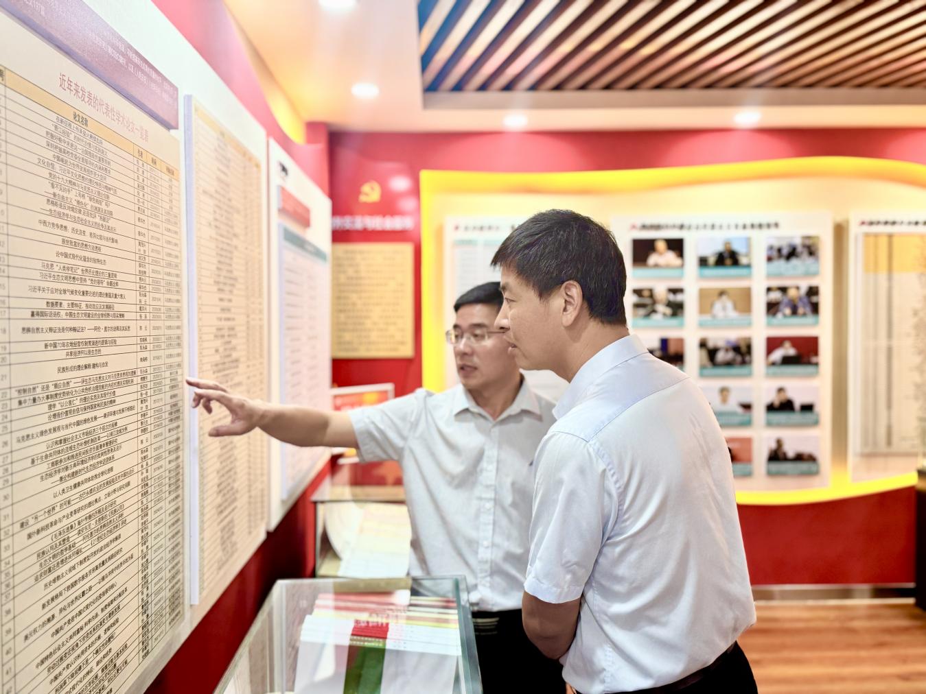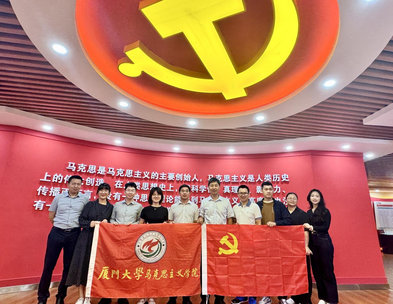 10月12日,厦门大学马克思主义学院党委副书记刘晓峰一行到我院马克思主义学科群展览馆调研考察。学院党委副书记杨君火以及相关科室负责人陪同调研。