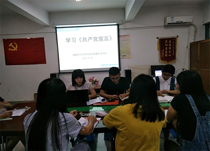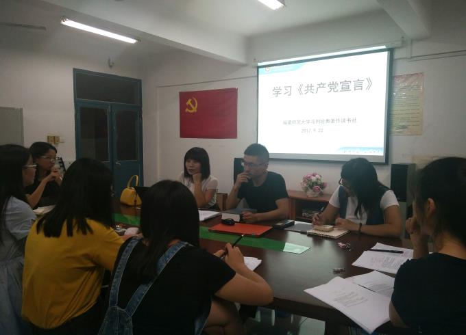 9月22日19:00,福建师范大学马列经典读书社在桃12一楼活动室开展《共产党宣言》学习读书会。本次活动由社长钟亮才主持,特别邀请厦门大学马克思主义学院硕士研究生、福建师范大学马克思主义学院2016届本科毕业生宋江雪,为我们分享读书经验,读书社成员共同出席。