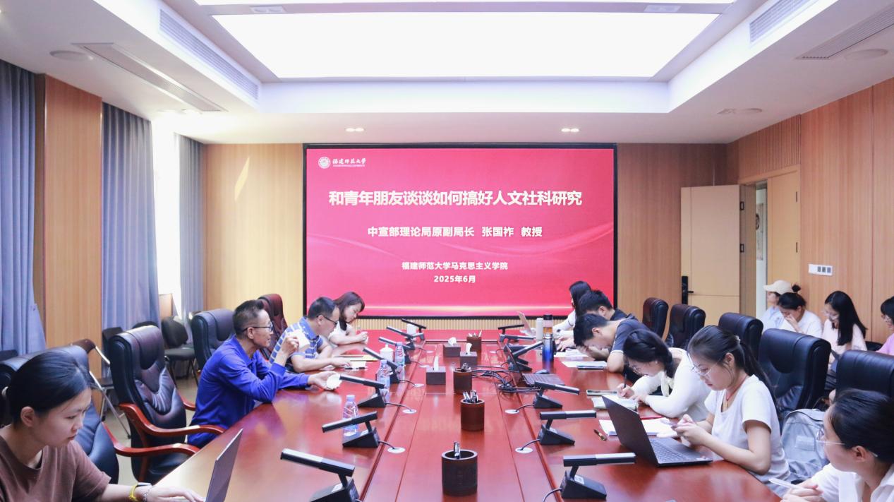 讲座中,张国祚立足人文社科研究要求,深入阐述了青年学子搞好学术研究需要坚持的重要原则:一是明确人文社科研究的意识形态属性,坚定正确政治方向;二是选择兼具理论价值与现实意义的选题研究,聚焦党和国家发展的重大问题;三是拓宽研究视野,兼具历史纵深意识与国际比较视角;四是强化创新思维,辩证把握坚持继承与创新发展的关系,着力推动思想观点、逻辑框架及研究方法的创新;五是整合学科资源,打破学科壁垒;六是倡导深入浅出、简洁明快的良好文风。最后,他结合自身科研经历,勉励在场学子坚守学术初心,以兴趣为内生动力,凭借扎实的专业根基与深厚的理论储备,以百折不挠的学术韧性勇攀科研高峰。在互动环节,张国祚与师生围绕“文化主体性研究”、“意识形态话语权研究”等议题展开学术对话,现场学生踊跃提问,交流热烈,学术氛围浓厚。