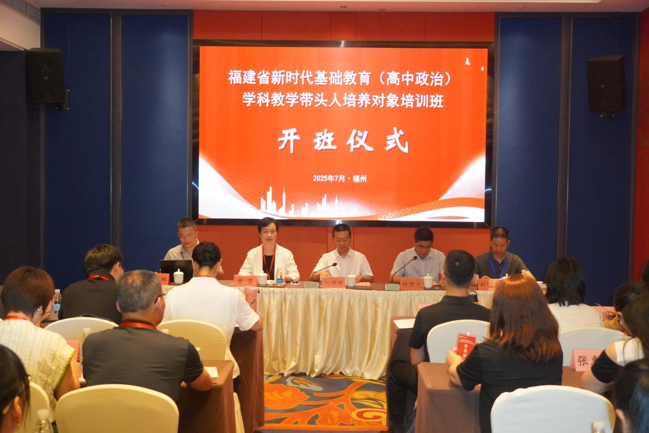 7月19日至26日,由福建省教育厅主办,我院承办的福建省新时代基础教育(高中政治)学科教学带头人培养对象培训班在福州顺利举办。学院党委书记、项目负责人阮传瞰,学院党委副书记杨君火,学院副院长、培训对象理论导师代表黄雯教授,学院思想政治教育教研部主任、培训班班主任刘国皇副教授,福建师范大学附属中学校务委员、正高级教师、培训对象实践导师代表何燕林出席开班仪式。