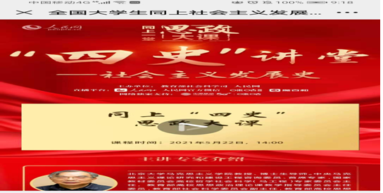 《中国近现代史纲要》教研部全体老师以线上的方式共同收看了“四史”讲坛之社会主义发展史,从学习党史中汲取前进力量,走好新时代科学的社会主义发展道路。收看结束后,教研部进行了集体备课。教研部老师表示通过此次的学习,既有所反思,也有所收获。科学社会主义具有科学性,人民性、实践性和时代性,中国特色社会主义继承和发展了马克思主义,开拓了马克思主义发展的新境界,把对马克思主义的认识提高到新的水平。今后教学中,要结合教材相关章节,给学生讲透中国社会主义制度为什么好,引导学生深刻理解随着社会主义制度的不断发展,我们的制度必将越来越成熟,我国社会主义制度的优越性必将进一步显现,我们的道路也将越走越宽广。
