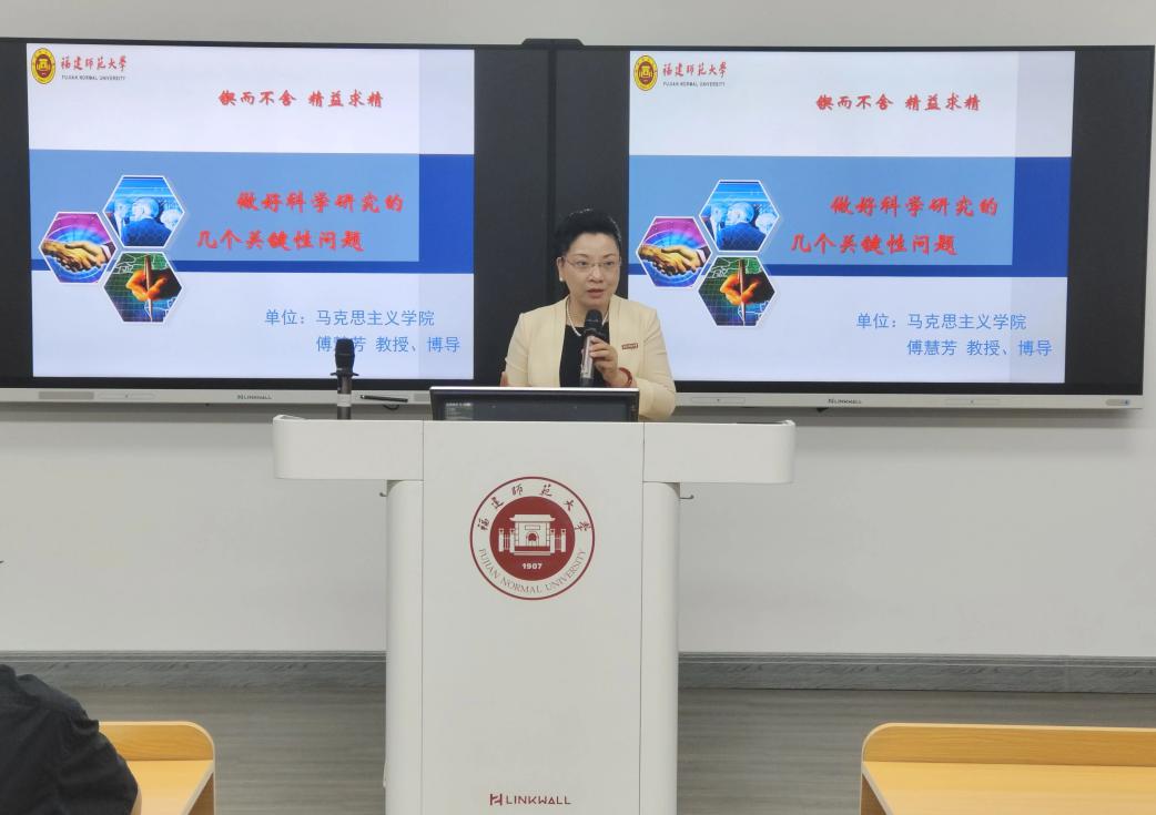 傅慧芳围绕“为什么做科学研究”与“怎样做科学研究”两方面展开阐述。她强调,研究生阶段的核心任务是实现从知识积累向创新研究的转变,学术型硕士应深耕理论、探索真知,专业型硕士需面向实践、服务社会,二者均需以科学研究回应时代命题、满足社会需要。