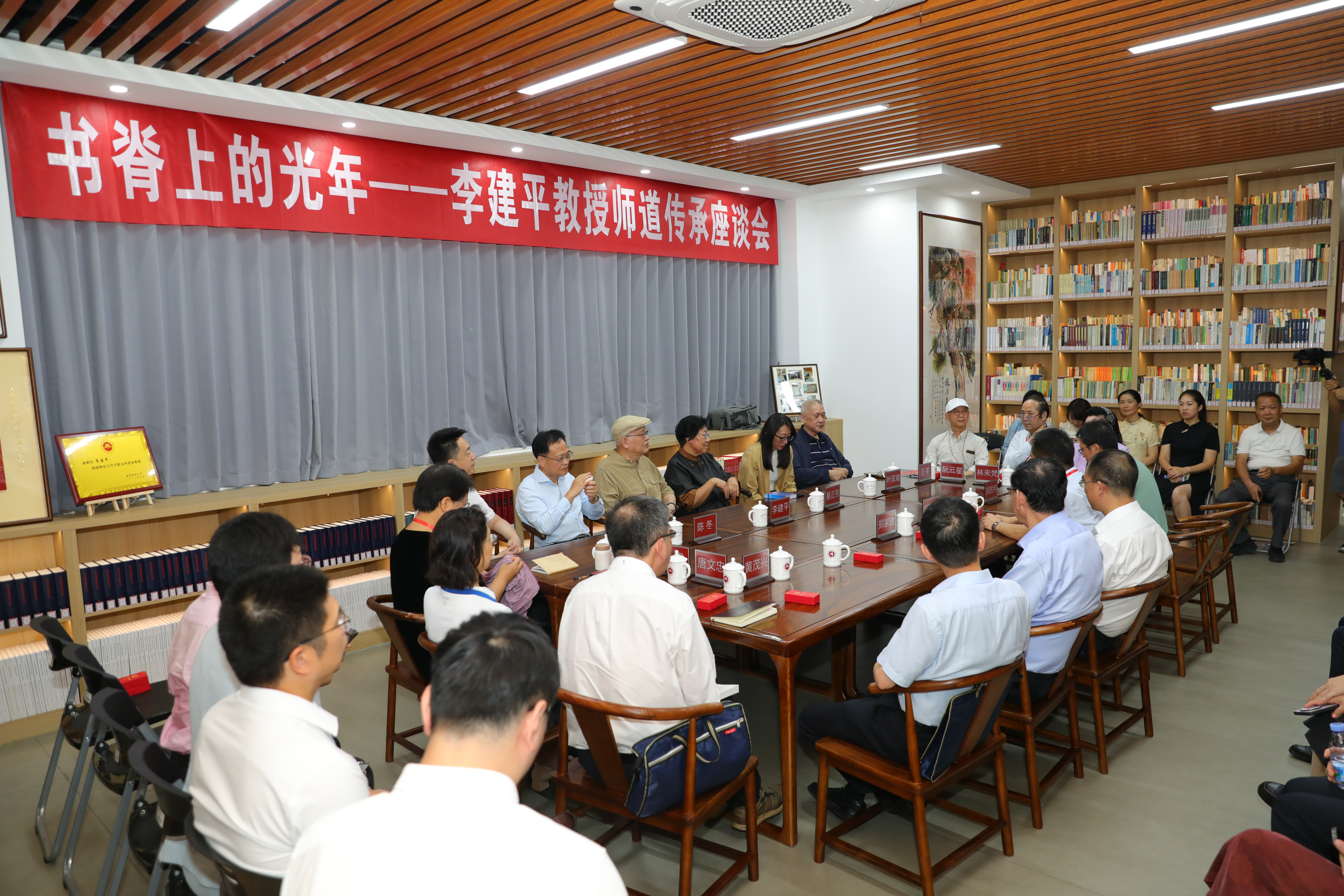 启用仪式后,全体嘉宾参观李建平书屋,并在书屋中举行“书脊上的光年——李建平教授师道传承座谈会”。座谈会上,陈冬等嘉宾在会上发言,言辞间饱含对李建平教授的深切敬仰之情。大家一致认为,李建平书屋是构筑青年学子丰盈精神世界的“精神巢穴”,为后辈树立起学术坚守与人格风范并重的榜样旗帜,同时勉励学子们坚守学术阵地、深耕治学之路,让承载着学人风骨的书籍,如光年般跨越时空、永续流传,成为学术薪火与精神传承路上永不熄灭的不朽灯塔。