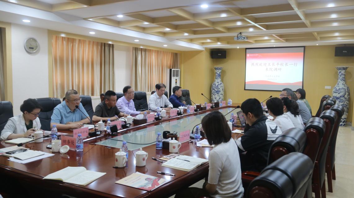 5月17日,校长王长平带领相关职能负责人到马克思主义学院开展“聚焦学科高质量发展,深入推进新一轮‘双一流’建设”主题调研活动,省委主题教育第14巡回指导组成员吕奕森出席指导,学院党政领导班子、各科室负责人参加了调研会。