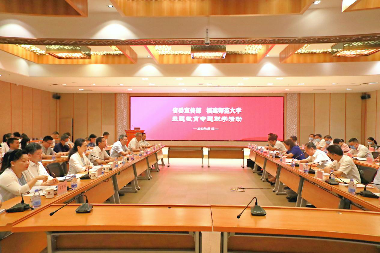 6月1日,省委宣传部与我校在旗山校区开展主题教育专题联学活动。省委宣传部常务副部长许守尧,省委主题教育第八巡回指导组组长游美萍、第十四巡回指导组组长翁启勇,省委宣传部班子成员及各处室单位负责人,校领导潘玉腾、陈晓红、涂荣、吴剑锋,我校机关职能部门及二级党组织负责人、师生代表等80余人参加活动。