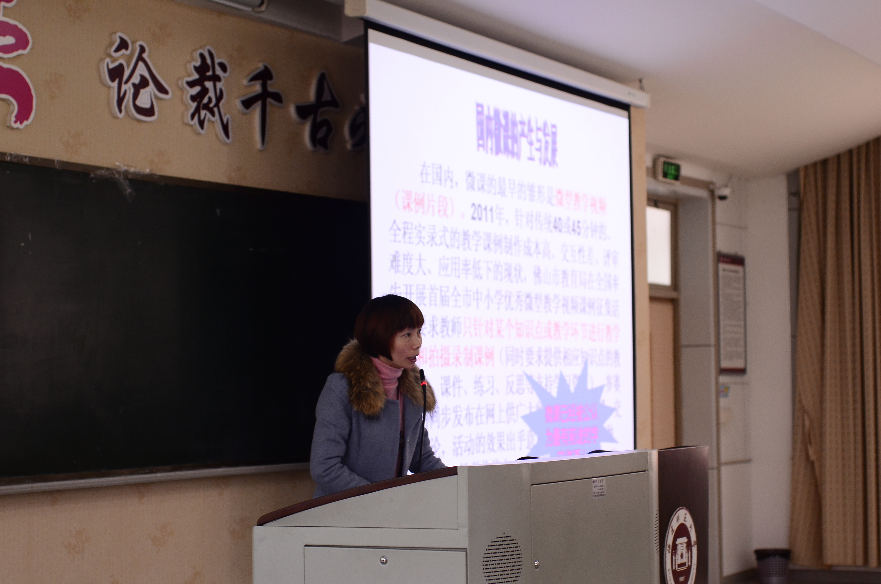12月5日上午9:00,由福建师范大学教务处主办,马克思主义学院承办的以“让微课走进课堂教学”为主题的名师讲堂在致广2-101教室举行。本次名师讲堂特邀福州第十九中学政治教研组组长、高级教师杨秀珍老师主讲,由马克思主义学院思政系刘国皇老师主持。