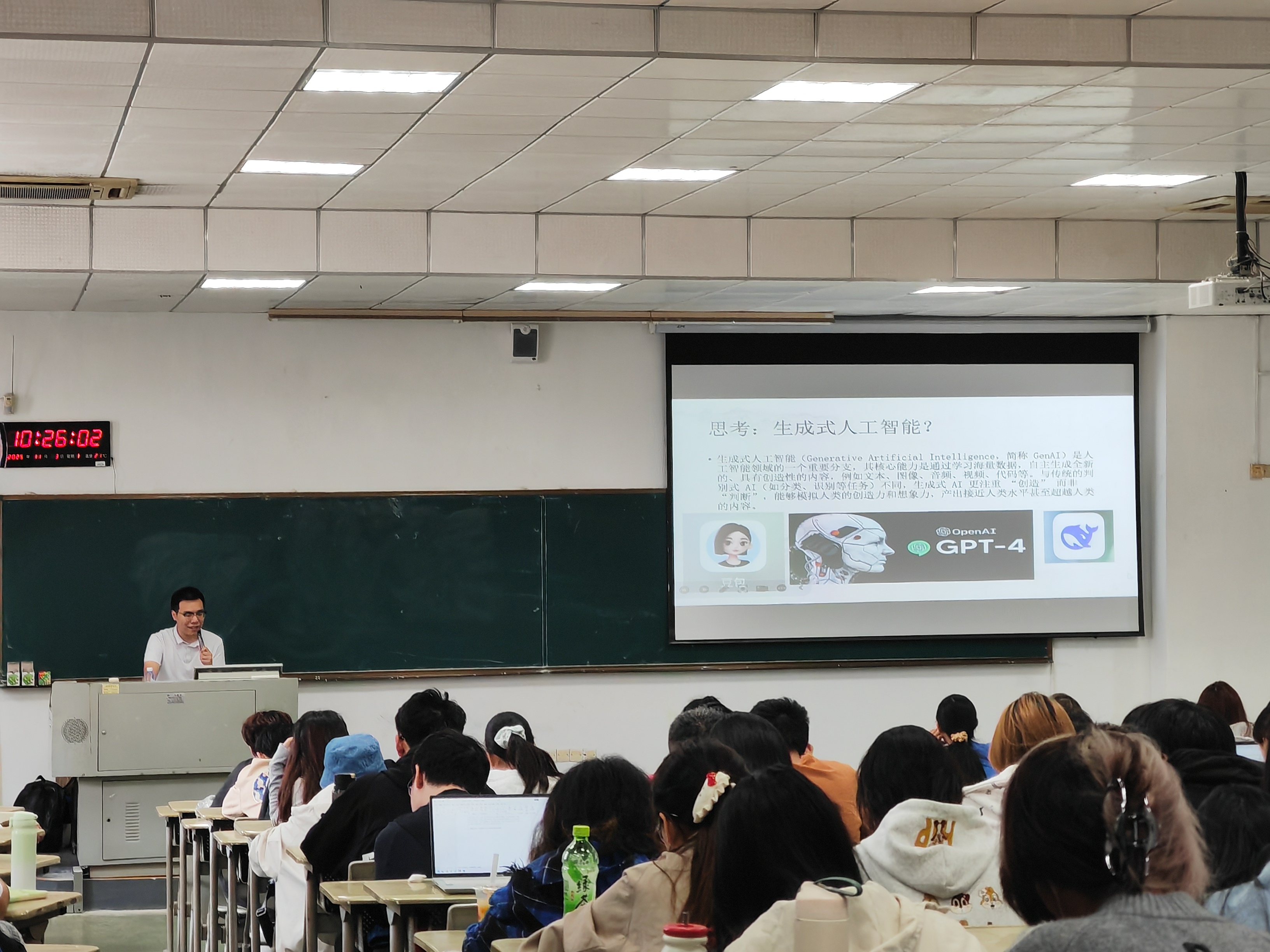 第二场讲座以“超越‘快与炫’:锚定有思想的新闻文风”为题,冯家照聚焦AI时代新闻传播的新挑战与新机遇,为学子指明文风塑造与专业坚守的实践方向。