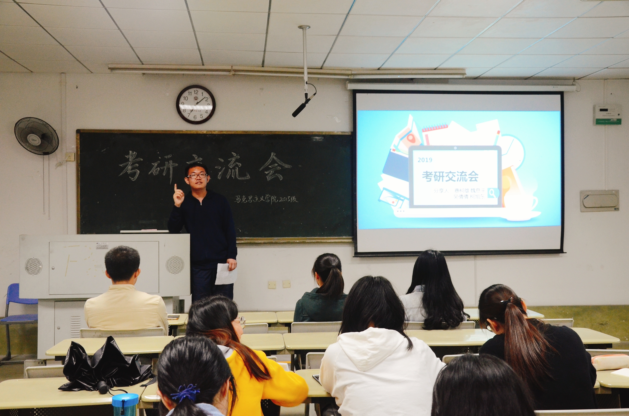 首先,费柯雄学长强调了大家要从实际出发,号召同学们要学习马克思主义经典著作、培养对时政新闻关注的素养。其次,吴倩倩学姐主要就保研问题为大家答疑解惑,她将保研的过程分为了几个关键的阶段并详细阐述了在各个阶段应该要做什么样的准备,鼓励同学们可以考虑保研的道路。再次,魏息平学姐从自己的复习经验出发,详细讲述了复习四门考研科目的方法,使同学们有了更深的领悟。最后,柯旭东学长先是回答了几个同学们近期比较关注的方向性问题,再是针对具体的复习内容、时间、方法以及准备过程中的问题分享了相关的经验,使同学们收获匪浅。交流会的最后,金导也分享了自己的心路历程,希望大家不骄不躁,脚踏实地,取得成功。
