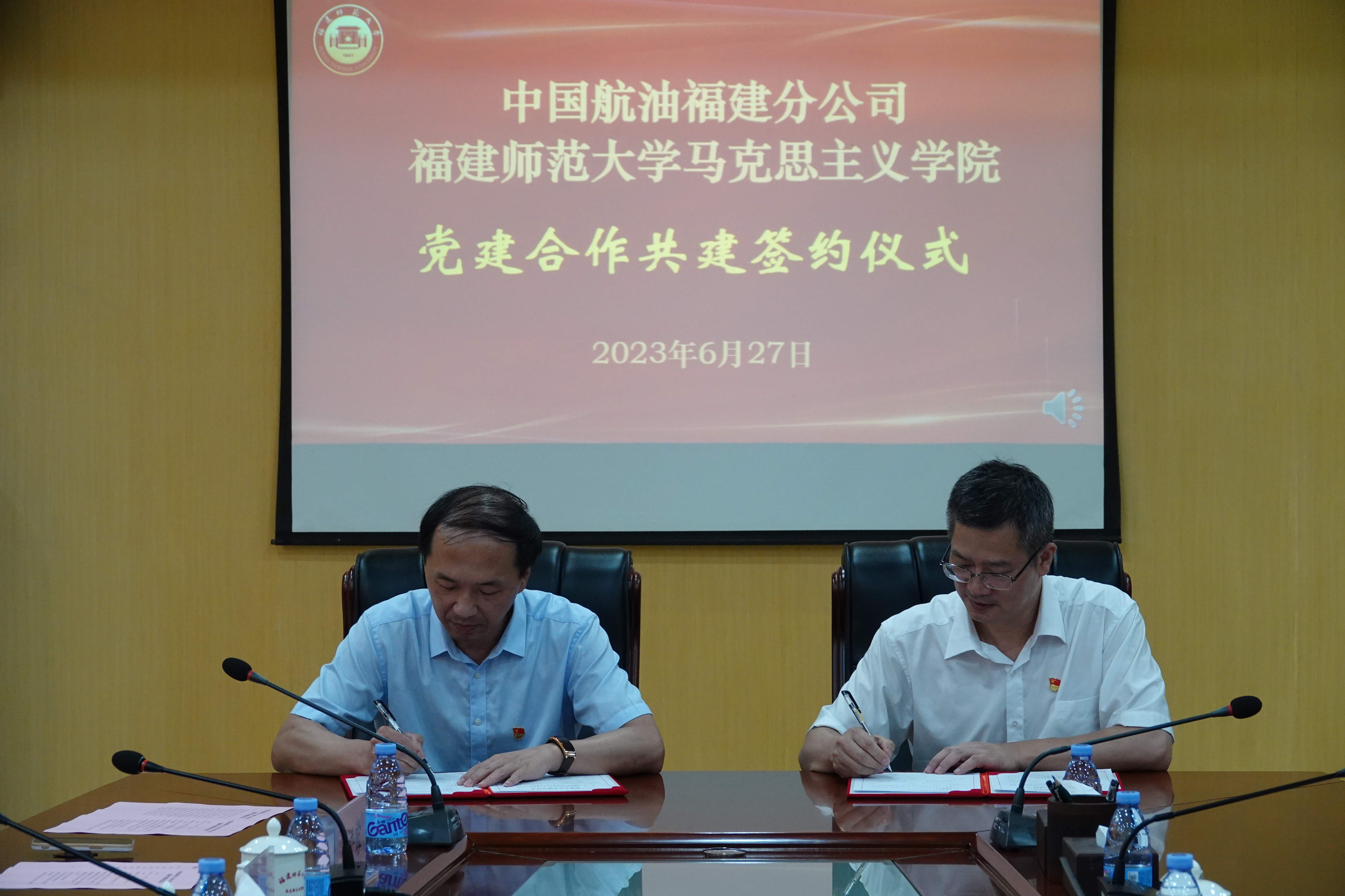 为深入学习贯彻落实习近平新时代中国特色社会主义思想,进一步加强党组织建设,探索党建工作的新思路、新方法,实现双赢互动、共同发展。6月27日,我院与中国航油福建分公司在人文楼527会议室举行党建合作共建签约仪式。中国航空油料有限责任公司福建分公司党委书记、经理郭兴,我院党委书记张爱民,党委副书记涂莹,中国航油福建分公司相关部门负责人和党员代表参加仪式。