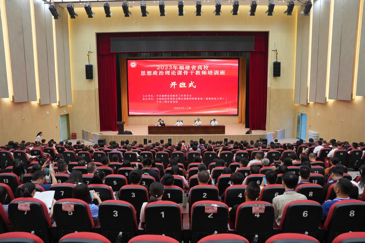 7月6日至7月9日,由中共福建省委教育工作委员会主办、全国高校思想政治理论课教师研修基地(福建师范大学)承办的2023年福建省高校思想政治理论课骨干教师培训班在中共三明市委党校成功举办。中共福建省委教育工委副书记、省教育厅党组成员林生,中共三明市委党校、三明市行政学院、三明市社会主义学院副校(院)长田生海,福建师范大学马克思主义学院院长傅慧芳出席开班式,开班式由福建省教育厅思想政治工作处处长郑邦华主持。