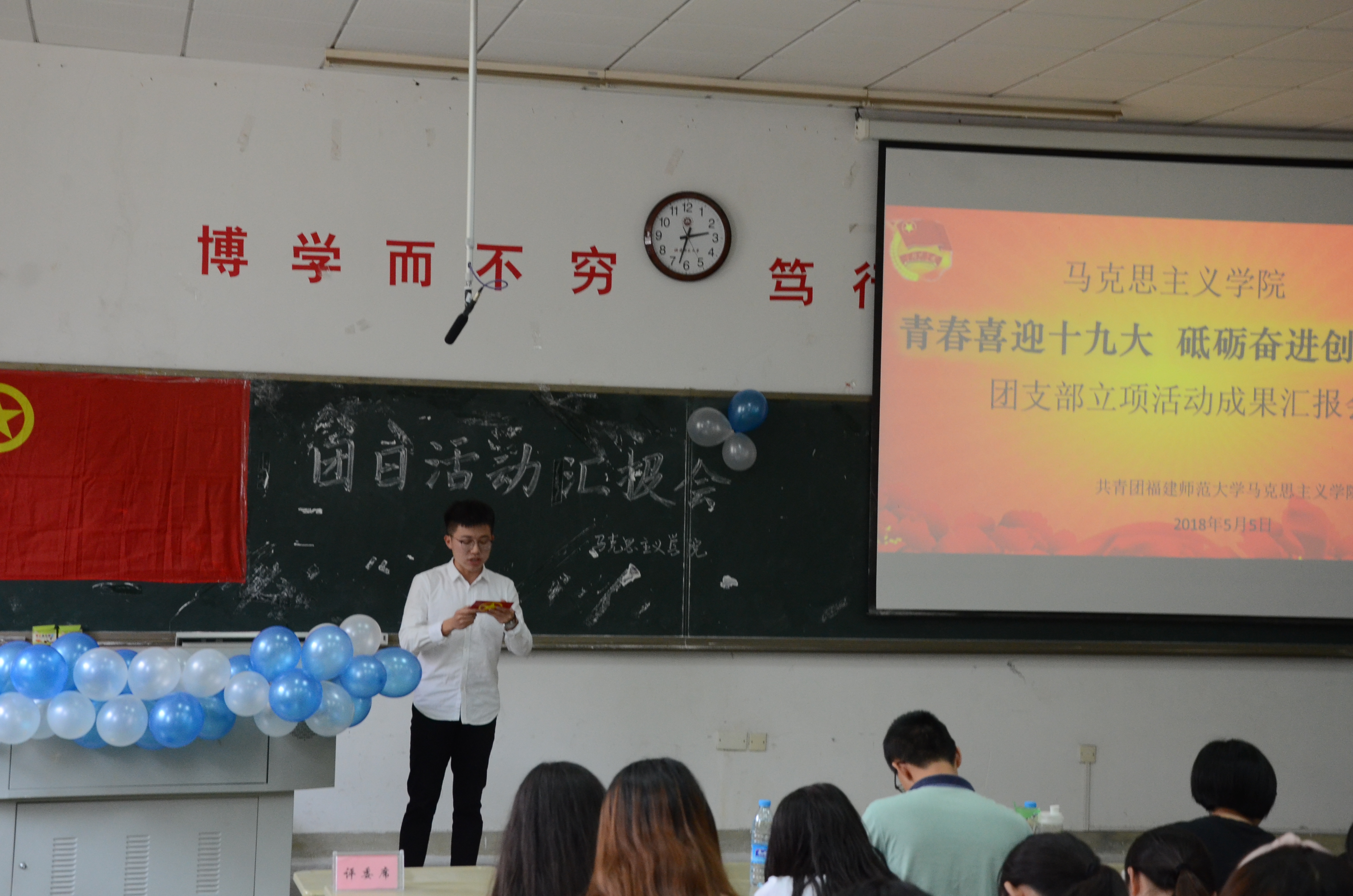 为贯彻校团委《关于开展青春喜迎十九大 砥砺奋进创一流的通知》发文要求,检验各支部团立项的开展情况与收获状况,我院于2018年5月5日在笃行1-112教室举行了本学年的团日活动汇报会。到场的评委老师有院团委书记涂莹老师、本科生辅导员苏剑老师、研究生辅导员陈丹丹老师。