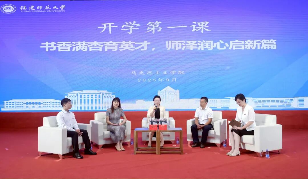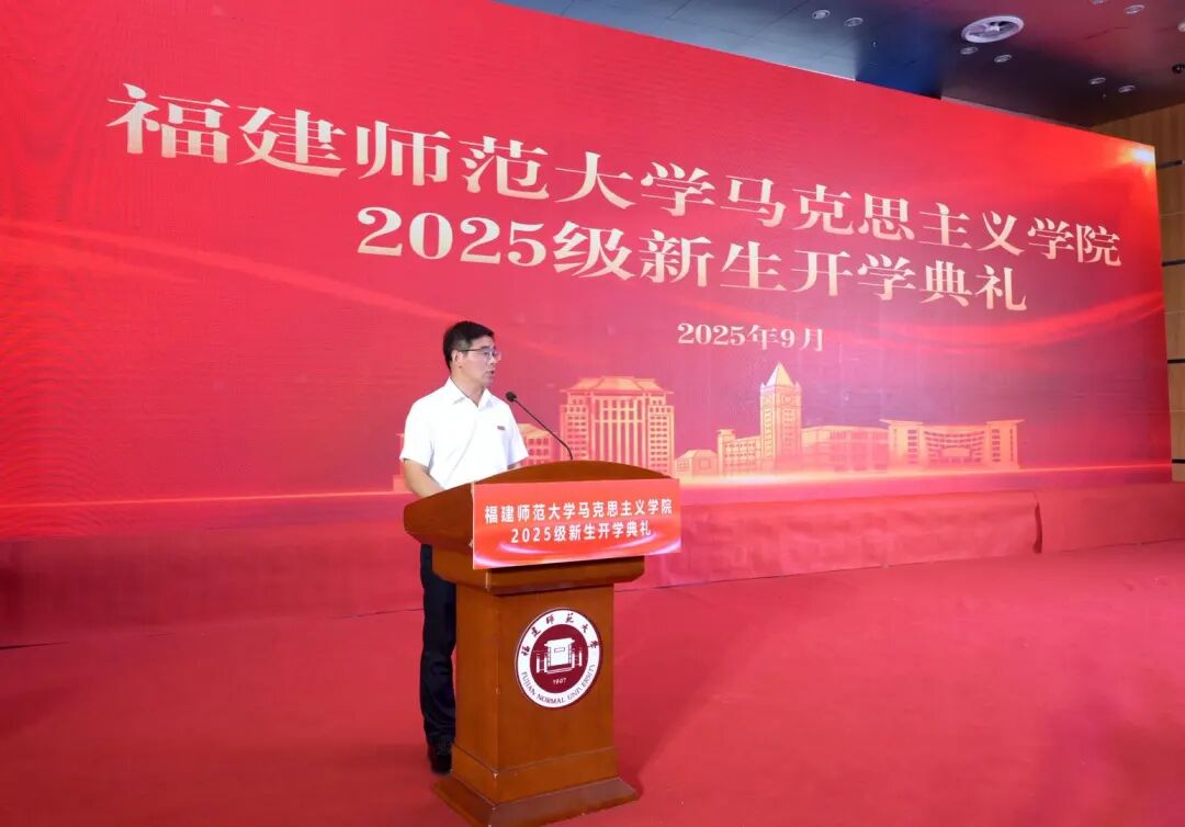 9月10日,我院2025级新生开学典礼在图书馆学术大讲堂隆重举行。院长傅慧芳代表学院热烈欢迎2025级全体新生加入马院大家庭,她对学院进行了全面且深入的介绍,并对新生提出了殷切期望。教师代表豆颖康副教授、老生代表2024级硕士研究生吴逸涵同学、新生代表2025级本科生陈梓涵同学依次上台发言。典礼上,学院领导老师们为新生代表佩戴校徽;院党委书记阮传瞰为新生班主任代表颁发聘书。同学们带来精彩的主题诗朗诵《青马筑梦正当时,挺膺担当谱新篇》。随后全体师生齐唱院歌,回望初心,展望未来,共同开启新的篇章。