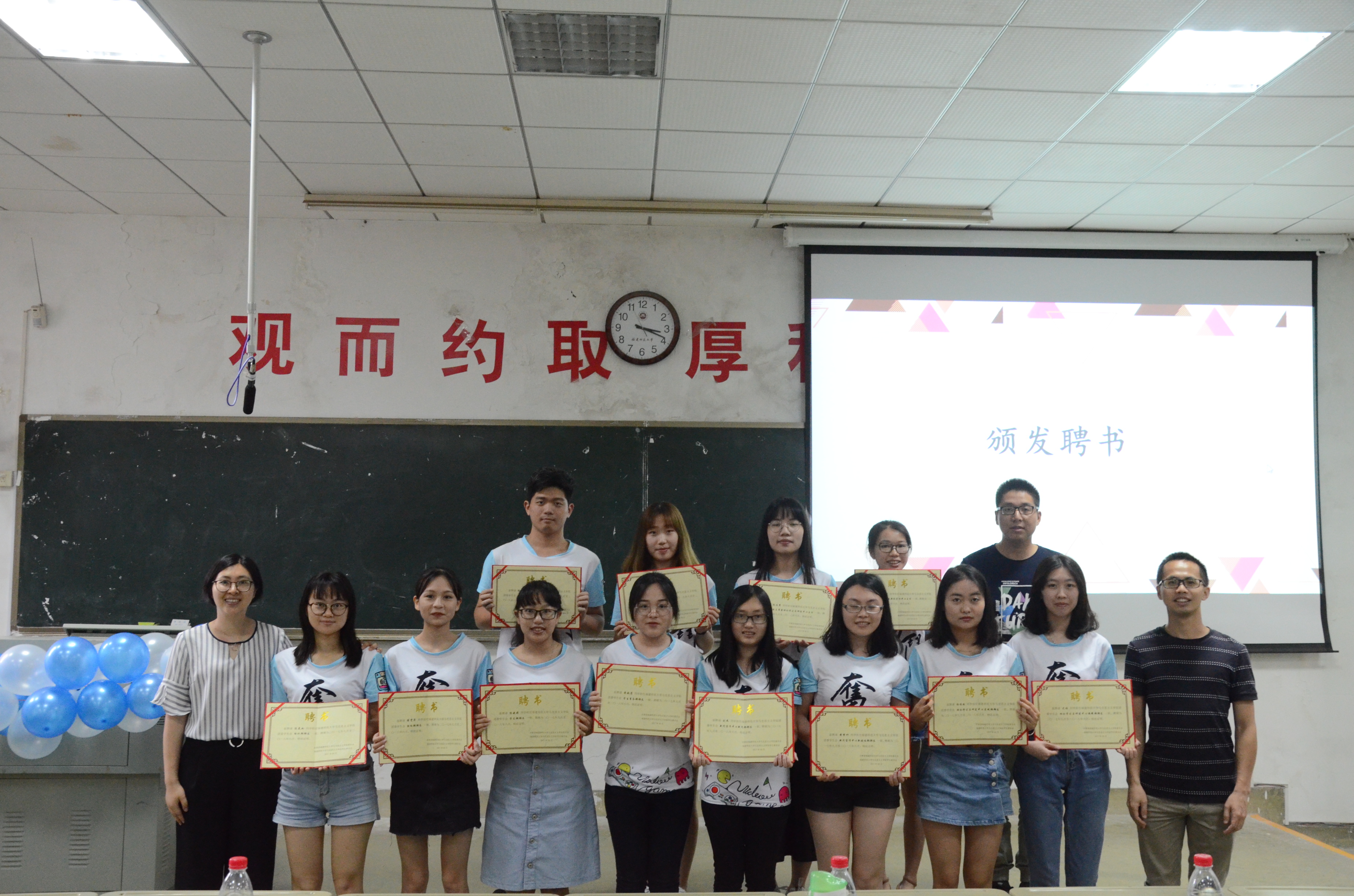 本次大会分为三个环节。第一环节中,第七届团委学生会精心制作的总结视频带领大家回顾了17-18学年各部门的工作,视频中各部长用温馨独特的方式总结部门工作,寄托着对下一届团委学生会的期待。视频虽短,但给同学们带来满满的温暖与正能量。第二环节由候选人进行四分钟的竞选演讲,演讲结束后由师生评委团进行现场提问。每位候选人在本环节中都介绍了自己的团学工作经历、对自我的认识、对竞选职位的认识及自己的工作设想,全面地展现自我。他们的冷静和幽默得到了老师和同学的阵阵掌声。在第三环节,涂莹老师、苏剑老师、金程远老师为第七届团委学生会颁发聘书并合影留恋。最后,16、17级同学为部长团精心准备的两个视频、16级的同学为第七届团委学生会部长团深情朗诵的三行情诗,都表达了他们的真挚情感,充满了温馨与感动。伴随着感动与祝福,第八届团委学生会主席团也在唱票中选举产生。