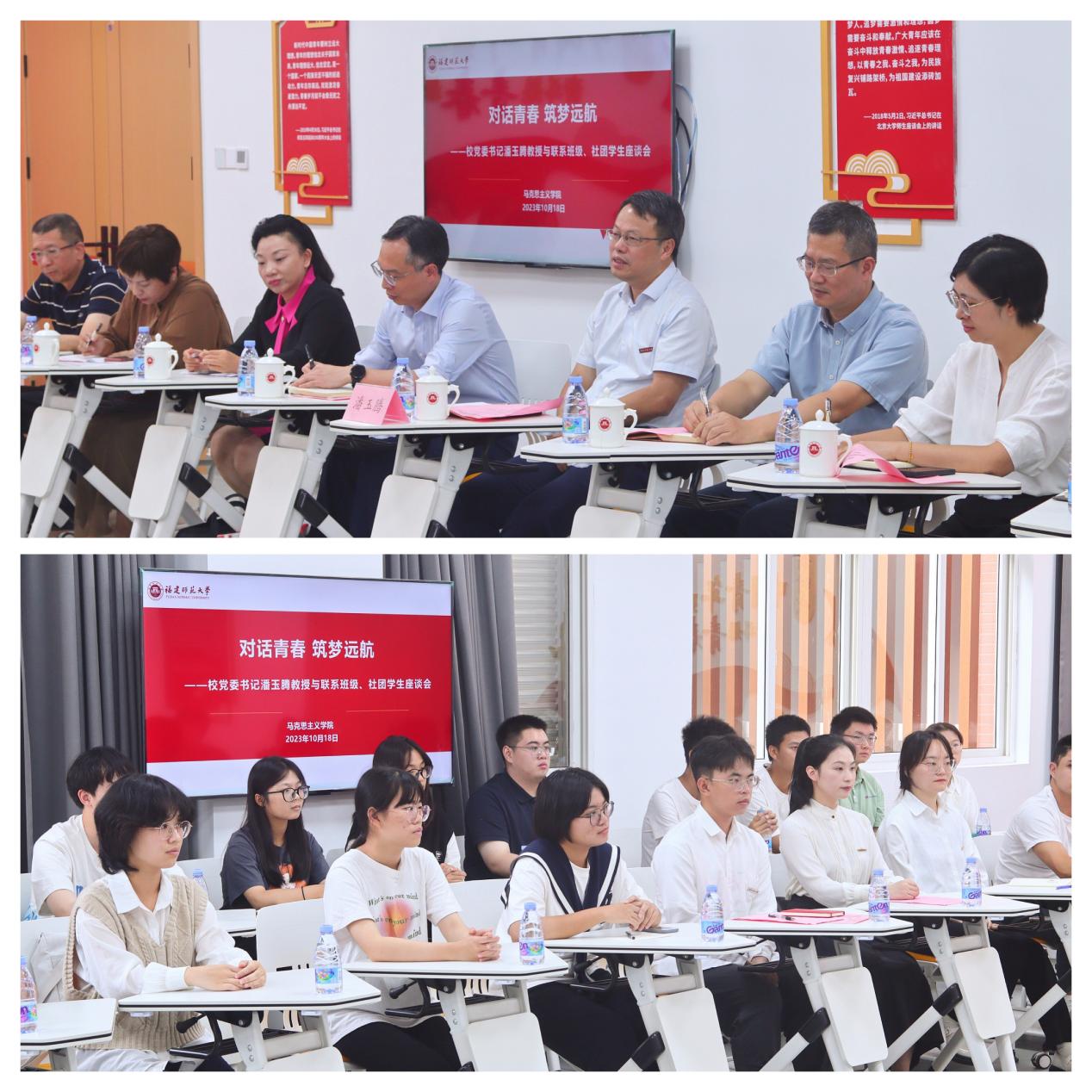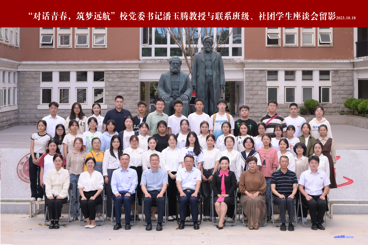 10月18日,校党委书记潘玉腾走进所联系的我院2023级马克思主义理论类二班(团支部)和福建省习近平新时代中国特色社会主义思想大学生研习社,开展“对话青春 筑梦远航”主题座谈会,深入了解青年学生的所思所想、所期所盼。