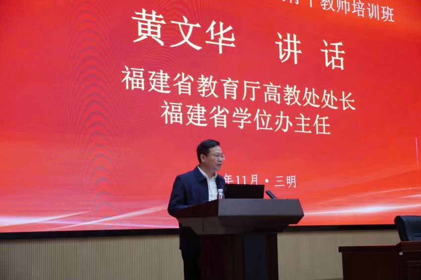 11月2日,由福建省教育厅主办,全国高校思想政治理论课教师研修基地(福建师范大学)承办的2023年福建省本科高校课程思政骨干教师培训班在三明市委党校开班。福建省教育厅高教处处长、福建省学位办主任黄文华,福建师范大学副校长陈庆华出席开班式,开班式由福建省教育厅高教处于凌云主持。
