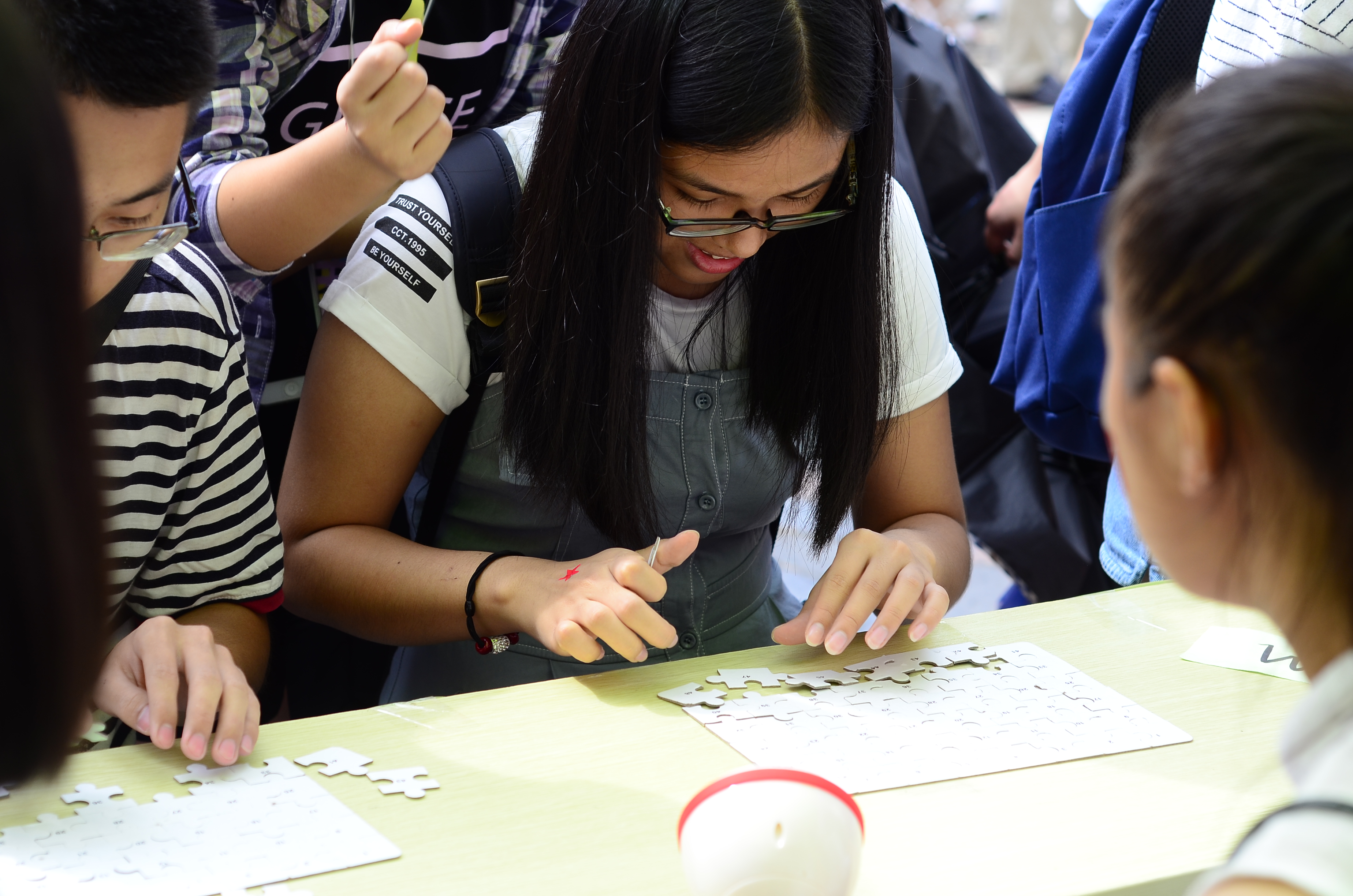 在同学们的精心布置之下,活动场地大放异彩。游园活动由游戏与抽奖两个环节组成。“弹弹弹”弹乒乓球游戏考验同学们的敏捷程度,“拼拼拼”拼图游戏测试同学们的眼力和反应力,富有趣味性,得到了老师和同学们的积极响应,游园活动显得热闹而又温馨。师生共同联欢,游戏拉近距离,分享点滴喜悦,增进彼此感情。除此之外,活动的另一重要组成部分是抽奖环节,团委学生会精心准备了精美的礼物。礼物不论大小,都饱含着浓浓的心意和满满的温情。在一片欢声笑语中,马院国庆游园活动圆满落下帷幕。