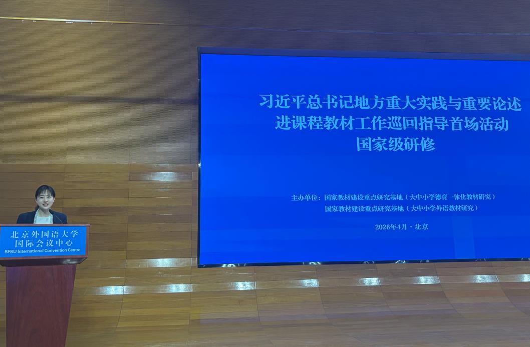 2026年4月23日至24日,由国家教材建设重点研究基地(大中小学德育一体化教材研究)、国家教材建设重点研究基地(大中小学外语教材研究)联合主办的“习近平总书记地方重大实践与重要论述进课程教材巡回指导首场活动国家级研修”在北京举行。