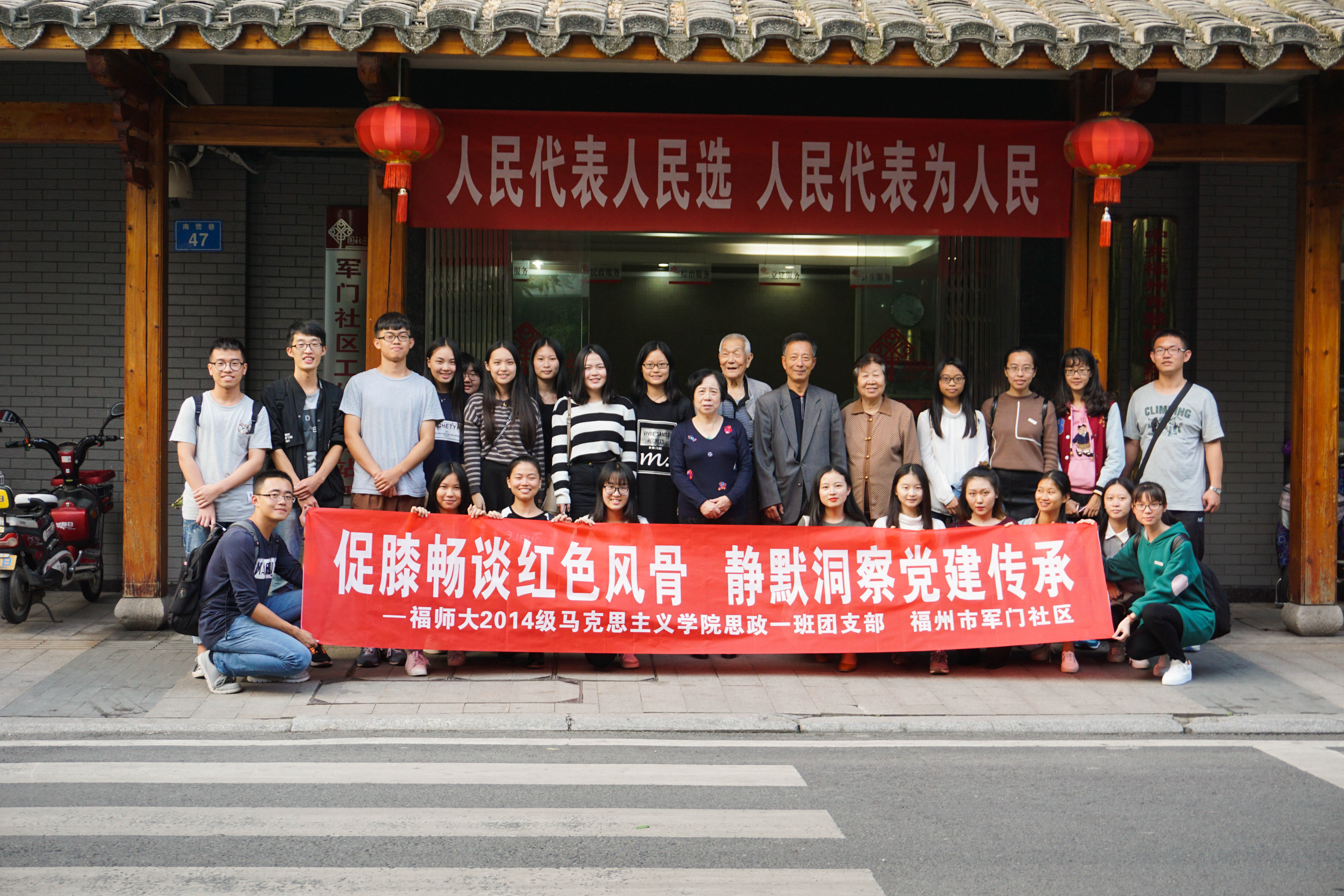 11月16日15:00,我院2014级思政一班团支部促膝长谈红色风骨,静默洞察党建传承主题团日活动在福州市鼓楼区军门社区开展。本次团日活动由本支部和福州市军门社区共同举办。