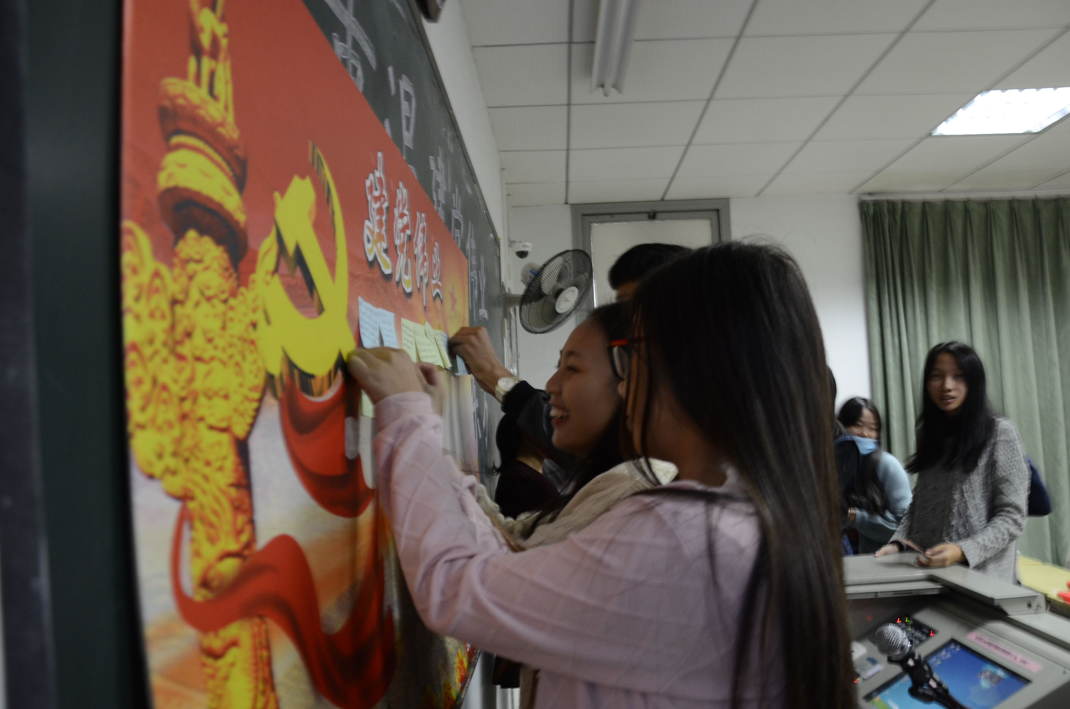 为庆祝长征80周年,响应校团委的号召,进一步了解中国共产党成立的光辉历程,提高团员的思想觉悟,树立崇高的理想,坚定共产主义的信念。学院2016级思政2班团支部于11月9日14:00在笃行2-216开展了以“重温建党伟业,致敬东方日出”为主题的团日活动。活动由张慧敏同学主持。