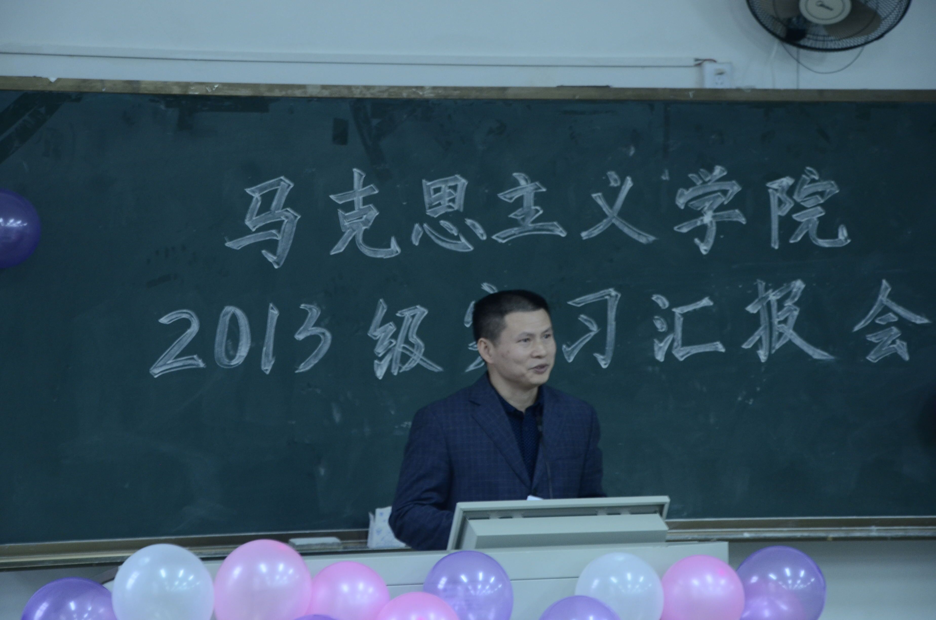 12月5日14:30,马克思主义学院2013级实习汇报会于立诚1-106举行。院工会主席、思政系主任廖志诚老师,思修教研室主任陈志老师,思政系宋鲁闽老师、刘国皇老师、蔡华杰老师、李逢铃老师,2013级辅导员金程远老师,同2013级、2014级本科生一同参加了本次汇报会。