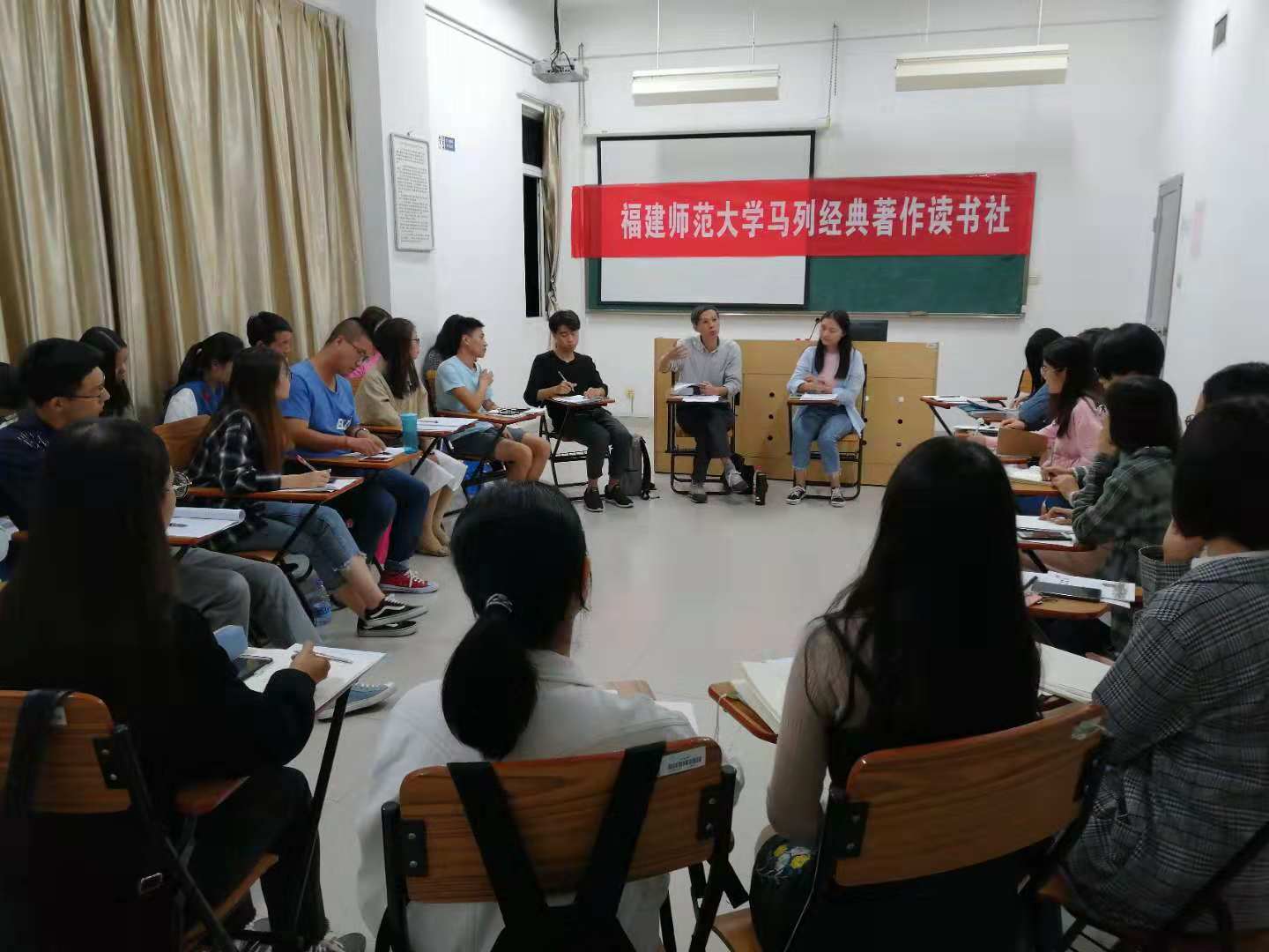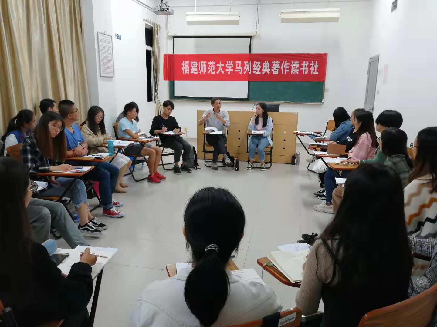 10月27日晚,福建师范大学马列经典著作读书社在人文楼3-405,开展“如何阅读马列经典”读书交流活动。本次交流活动邀请到我院党委书记陈永森教授莅临指导,读书会由社长艾群同学主持,读书社全体成员共同参与。