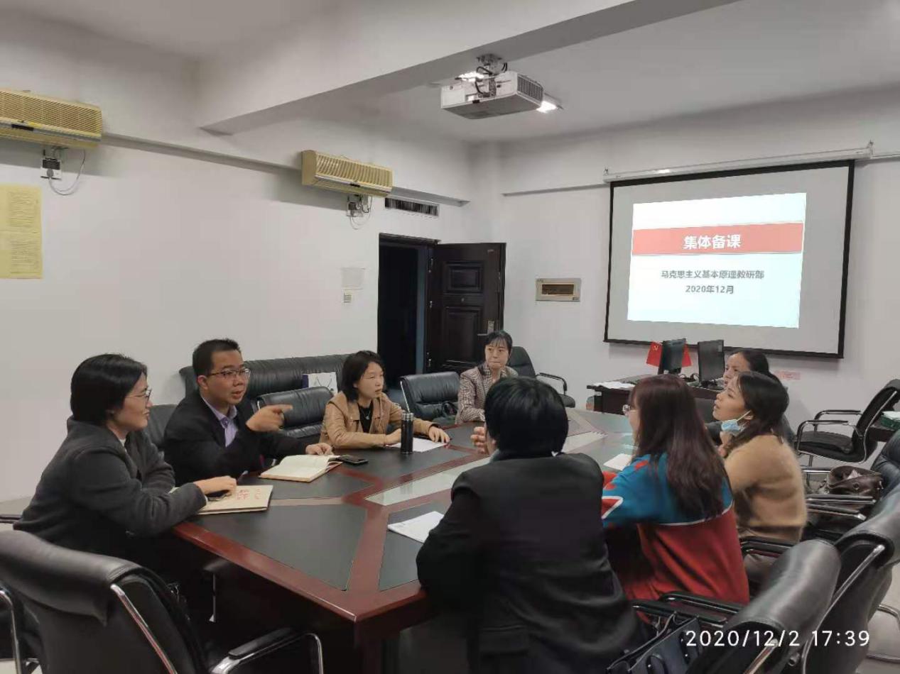 12月2日,马克思主义学院原理教研部在人文楼521召开了《马克思主义基本原理概论》课程2020-2021学年第一学期第四次专题学习集体备课会。教研部教学团队在认真聆听许耀桐院长关于“开启全面建设社会主义现代化国家新征程”专题辅导的基础上,就如何将新发展阶段、新发展理念、新发展格局等党的十九届五中全会的系列新观点新论述与马克思主义基本原理概论教育教学有机结合进行了热烈讨论。